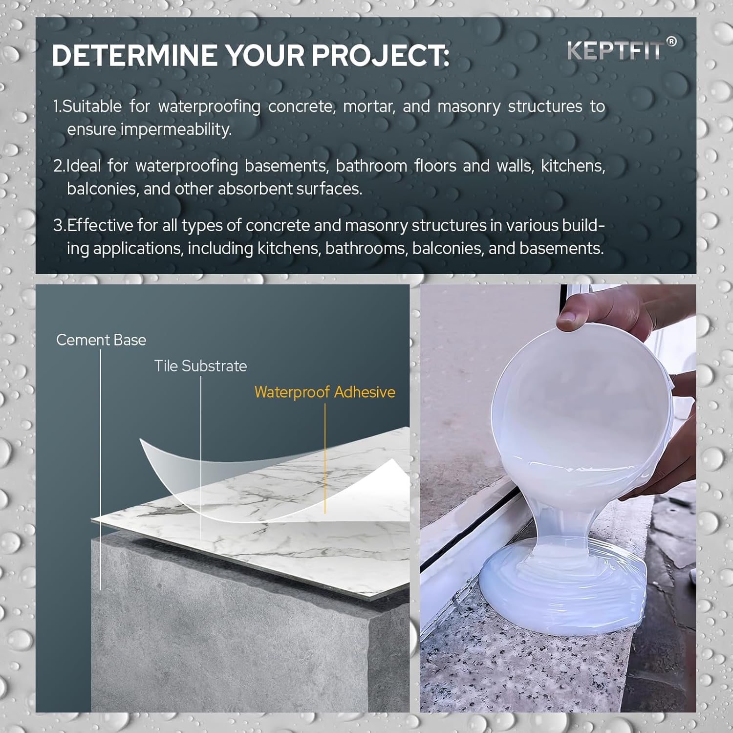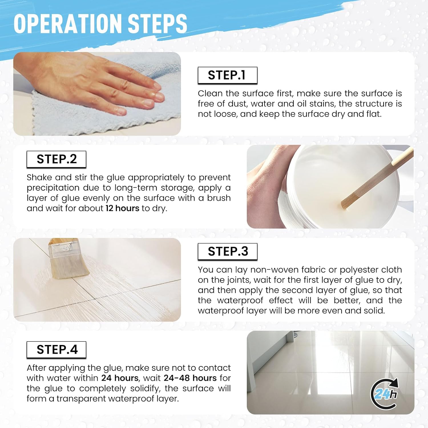 Multi-Surface Bonding – Works on bricks, tiles, wood, marble, stone, concrete, pipes, walls, roofs, toilets, and more.
